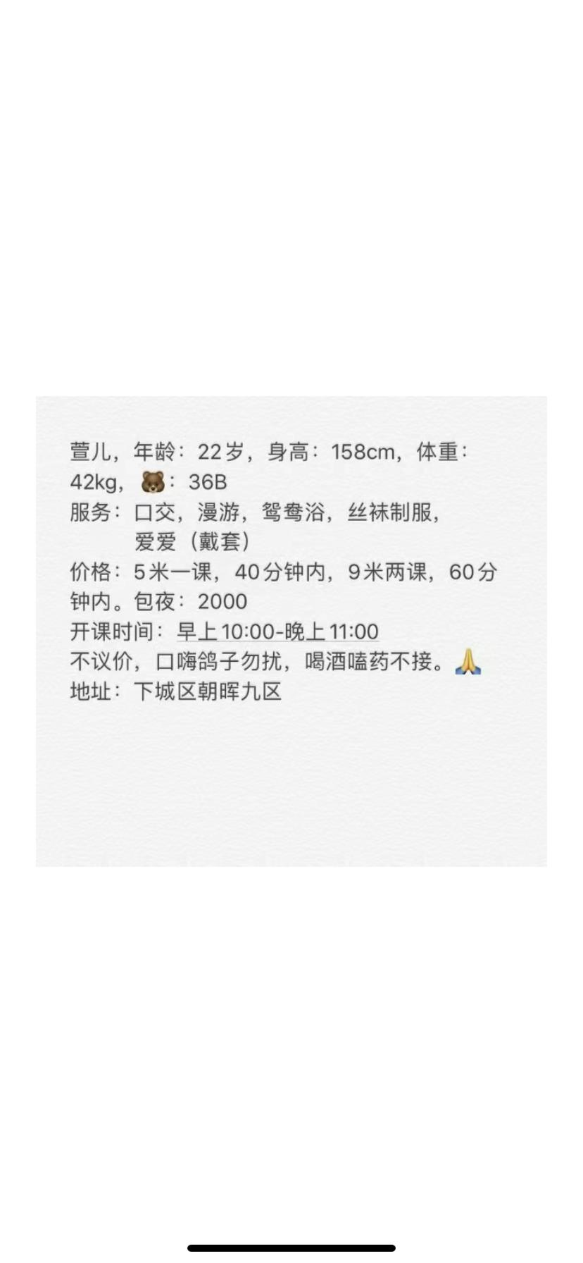 论坛有兄弟发过,看的是重庆妹坨,又是白虎,没体验过,心痒痒,预约前往。人照基本一致,川渝妹子普遍皮肤